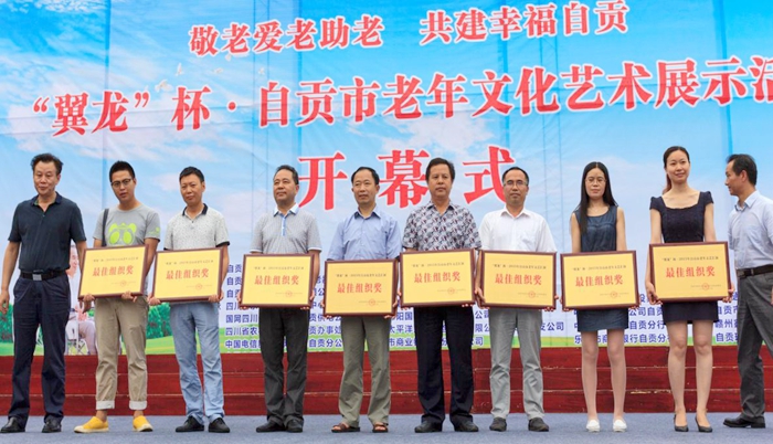 敬老愛(ài)老助老,共建幸福自貢。2015年6月2日由自貢市老齡工作委員會(huì)主辦的“翼龍”杯?自貢市老年文化藝術(shù)展示活動(dòng)在匯東公園正式舉行,我司榮幸被繳為參與支持單位,并被授予“敬老愛(ài)心單位”。
