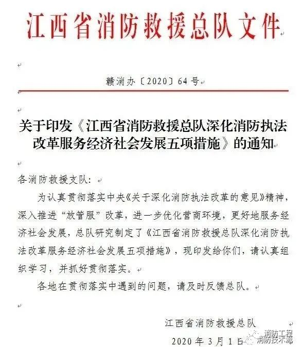 為認(rèn)真貫徹落實(shí)中央《關(guān)于深化消防執(zhí)法改革的意見》精神,深入推進(jìn)“放管服”改革,進(jìn)一步優(yōu)化營(yíng)商環(huán)境,更好地服務(wù)經(jīng)濟(jì)社會(huì)發(fā)展,總隊(duì)結(jié)合工作實(shí)際,在全省推出深化消防執(zhí)法改革服務(wù)經(jīng)濟(jì)社會(huì)發(fā)展五項(xiàng)措施: