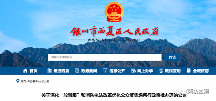 為持續(xù)深化“放管服”和消防執(zhí)法改革,認(rèn)真貫徹落實(shí)國(guó)務(wù)院《優(yōu)化營(yíng)商環(huán)境條例》(國(guó)務(wù)院令 第722號(hào)),大力提升便民利企服務(wù),根據(jù)《寧夏回族自治區(qū)消防救援總隊(duì) 公安廳 文化和旅游廳 市場(chǎng)監(jiān)督管理廳 關(guān)于深化“放管服”和消防執(zhí)法改革優(yōu)化公眾聚集場(chǎng)所行政審批辦理的通知》(寧消〔2021〕117 號(hào))文件要求,現(xiàn)將優(yōu)化公眾聚集場(chǎng)所行政審批辦理有關(guān)事項(xiàng)公告如下: