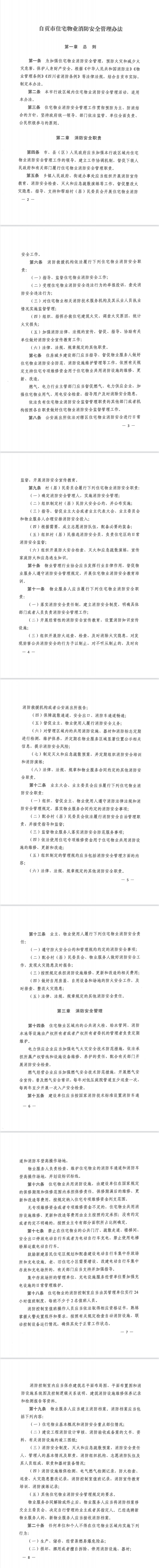 《自貢市住宅物業(yè)消防安全管理辦法》已經(jīng)2023年2月7日自貢市第十八屆人民政府第24次常務(wù)會議審議通過,現(xiàn)予公布,自2023年5月1 日起施行。