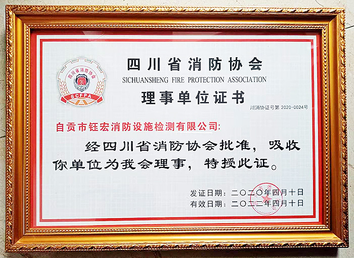 四川省消防協(xié)會理事單位證書
