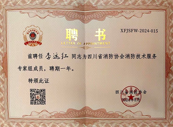 我司一級注冊消防工程師李運紅入選協(xié)會專家組成員